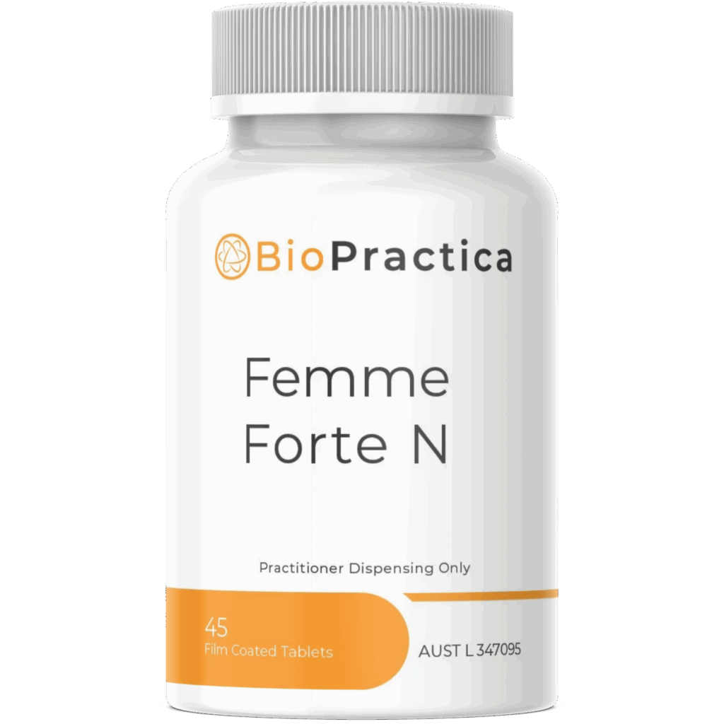 Femme FORTE N is specifically formulated with evidence-based nutrients and traditionally used herbs for comprehensive female hormone support.